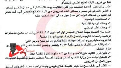 للتدخل العاجل..نقيب العلاج الطبيعي يخاطب رئيس الوزراء