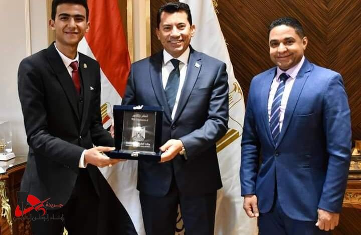 وزير الشباب يكرم الشاب عمرو محمد بعد حصوله على المركز الثاني على العالم في مجال الطاقة المتجددة