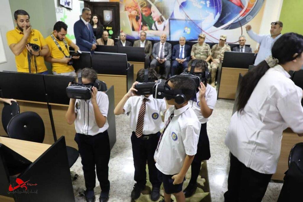 شارك المحافظ خلال جولته بالمدرسة البريطانية للغات الطلاب في حضور إحدى الحصص بنظام الواقع الافتراضي VR.