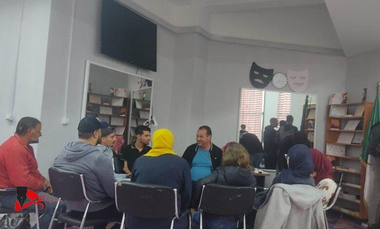 مؤطري الورشة العربية السيد بلفضال سيدي محمد رئيس فرع الجزائر لمسرح كنعان الوطني لدولة فلسطين والأستاذ زموري سمير كاتب ومخرج.