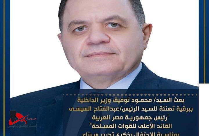 بعث اللواء محمود توفيق وزير الداخلية ببرقية تهنئة